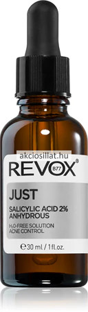 A Revox Just Salicylic Acid 2% Anhydrous 30ml egy vízmentes, szkvalán alapú hámlasztó oldat, amelyet kifejezetten a pattanásokra hajlamos, problémás bőrre fejlesztettek ki a pórusok mélytisztítására.